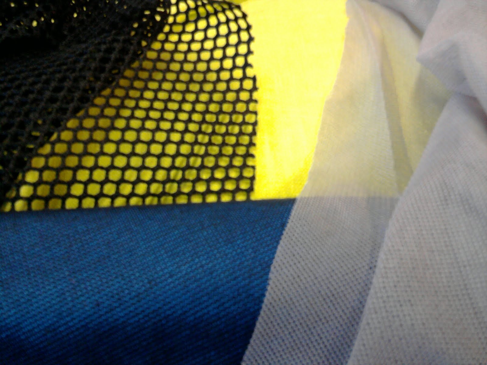 Here are the electric-blue and bright yellow for jacket+ some breathing fabricks with smaller and bigger holes.
